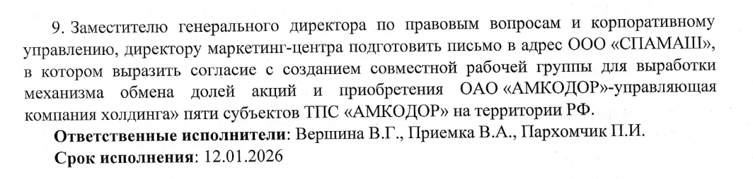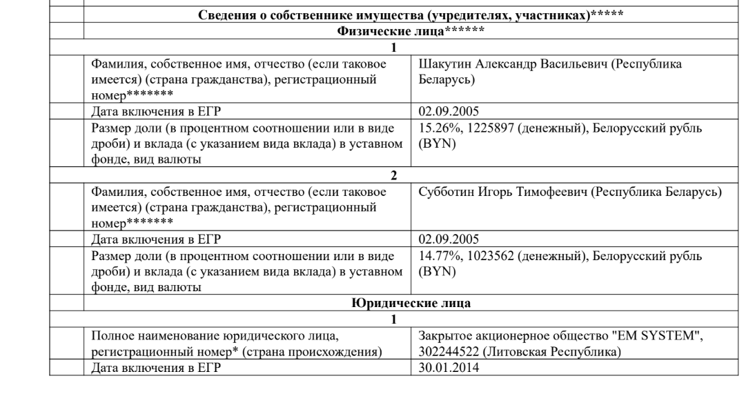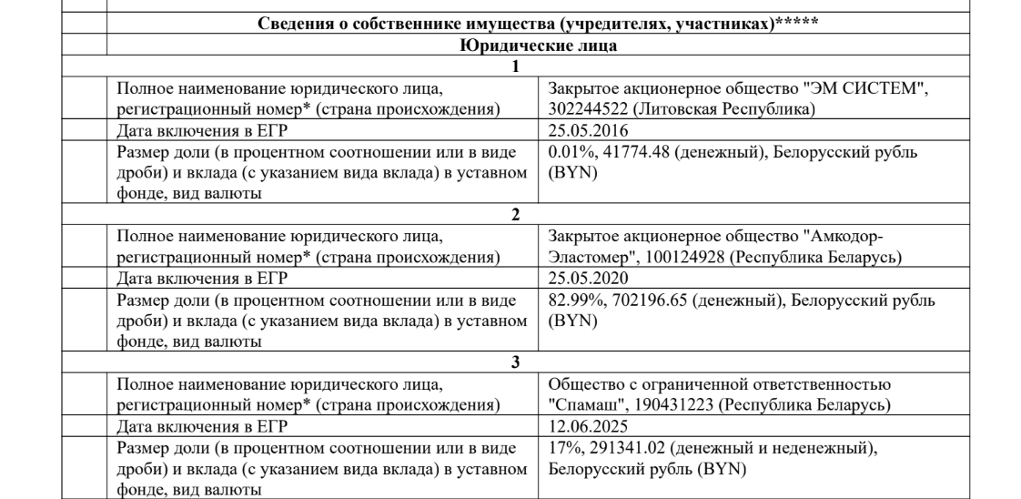 Абвяржэнне: Гэта няпраўда, ва ўсіх трох фірмах кантрольныя долі знаходзяцца ў руках Аляксандра Шакуціна і яго сям’і: «Амкадор-Эластамер» — праз кампанію «Спамаш», [*] СТАА «Проді» — праз «Амкадор-Эластамер» і «Амкадор-Спамаш», [*] [*] «Салео» — кіруючая кампанія холдынгу праз ТАА «Наванэп». [*] [*] [*]