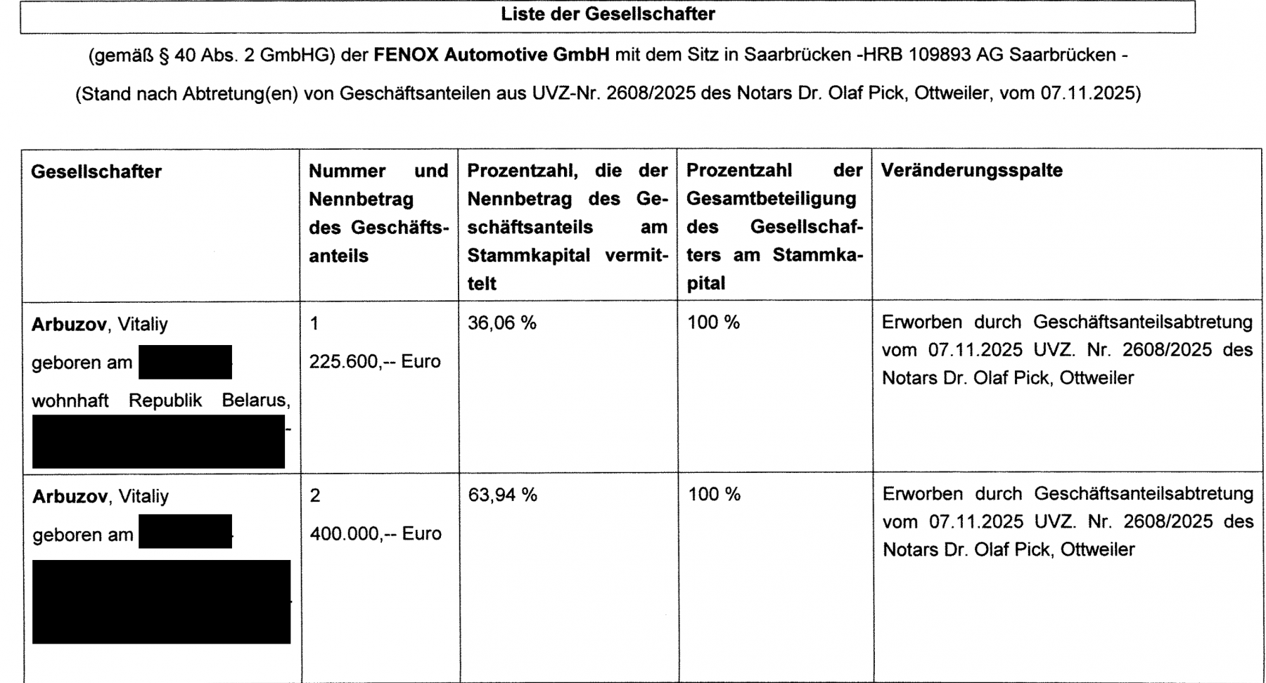 На спробу схаваць канцы паказваюць і паводзіны афіцыйнага сайта fenox.com. На яго можна зайсці з беларускага або расейскага IP-адрасу. Калі паспрабаваць зайсці з еўрапейскага, то старонка або не адкрываецца, або карыстальніка перакідвае на germany.fenox.com, які не адказвае. Пры гэтым існуе нямецкі сайт fenox-autoteile.de, на якім еўрапейскія кліенты могуць запоўніць форму на заказ дэталі. Сайт рэпрэзентуе кампанію Fenox Automotive GmbH, яе бенефіцыяр — беларускі бізнесовец Віталь Арбузаў. Ён жа з'яўляецца канчатковым бенефіцыярам пералічаных вышэй кампаніяў. [*]