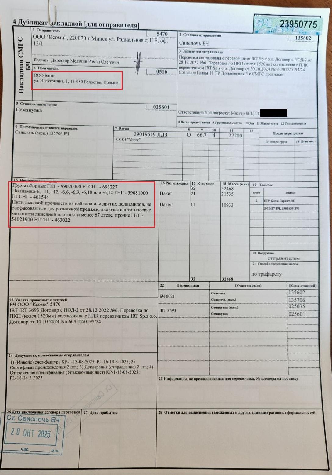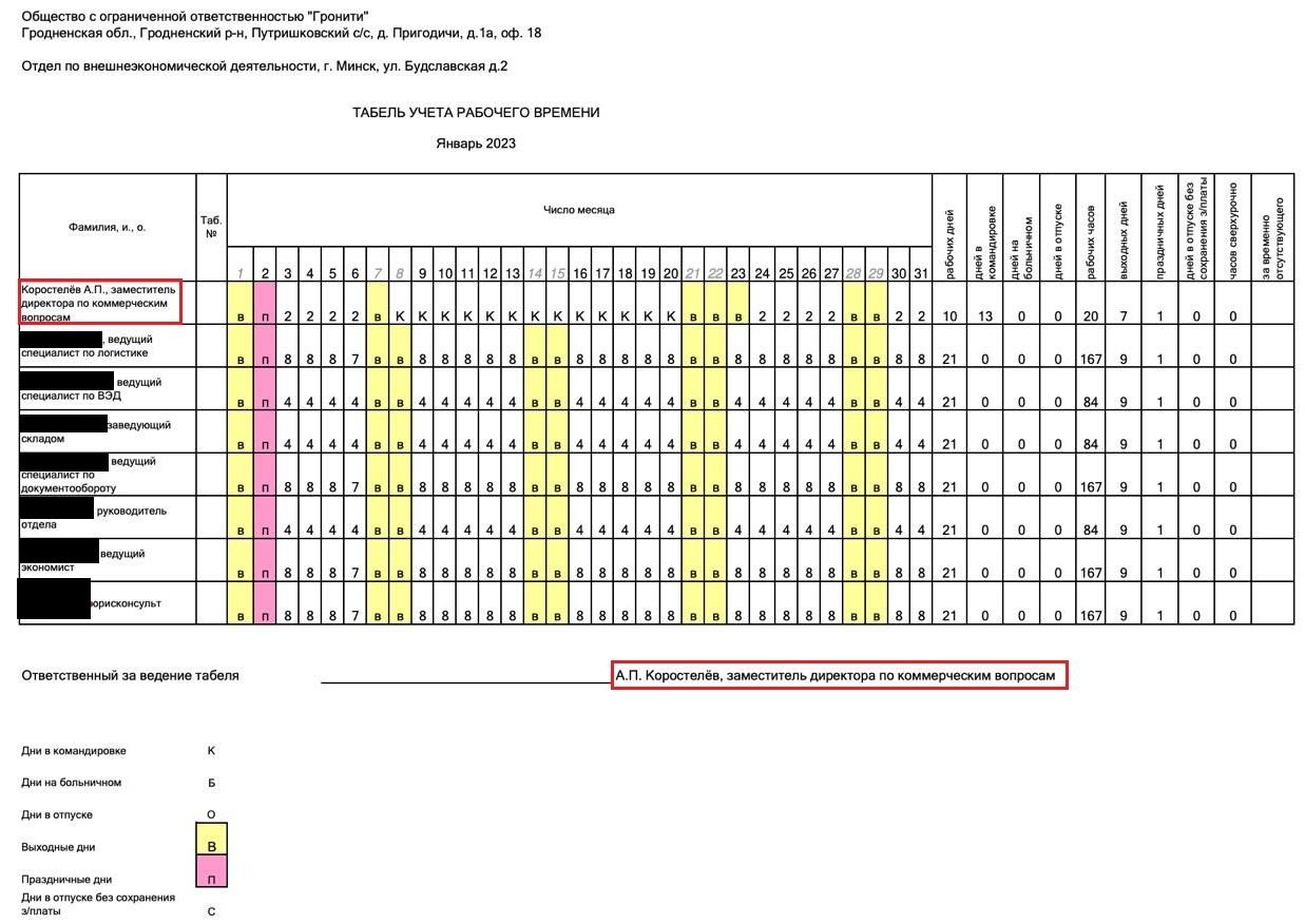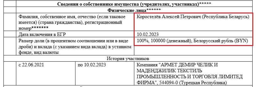 У афіцыйных паперах «Гроніці» акрамя дырэктаркі Ганны Лабачовай фігуруе яшчэ намеснік дырэктара па камерцыйных пытаннях Аляксей Карасцялёў. [*] Ён валодае кампаніяй, якая таксама дапамагае «Гродна Азоту» абыходзіць санкцыі, — ТАА «Ар-бел камодытэс». [*] [*] У жніўні 2025 года «Ар-бел камодытэс» заключыла дамову на €2 млн з турэцкай кампаніяй на пастаўку поліаміднай прадукцыі, якую, як мы высветлілі, насамрэч вырабляе беларускае падсанкцыйнае прадпрыемства. [*] Атрымальнікамі грузу па просьбе пакупніка могуць пазначацца фірмы ў іншых краінах. Напрыклад, партыю нейлонавых нітак атрымала польская кампанія з адрасам разгрузкі ў Беластоку — то бок купіла тавар фірма ў краіне, якая не ўводзіла санкцыі, але паехаў тавар у Еўразвяз. [*] [*] [*]