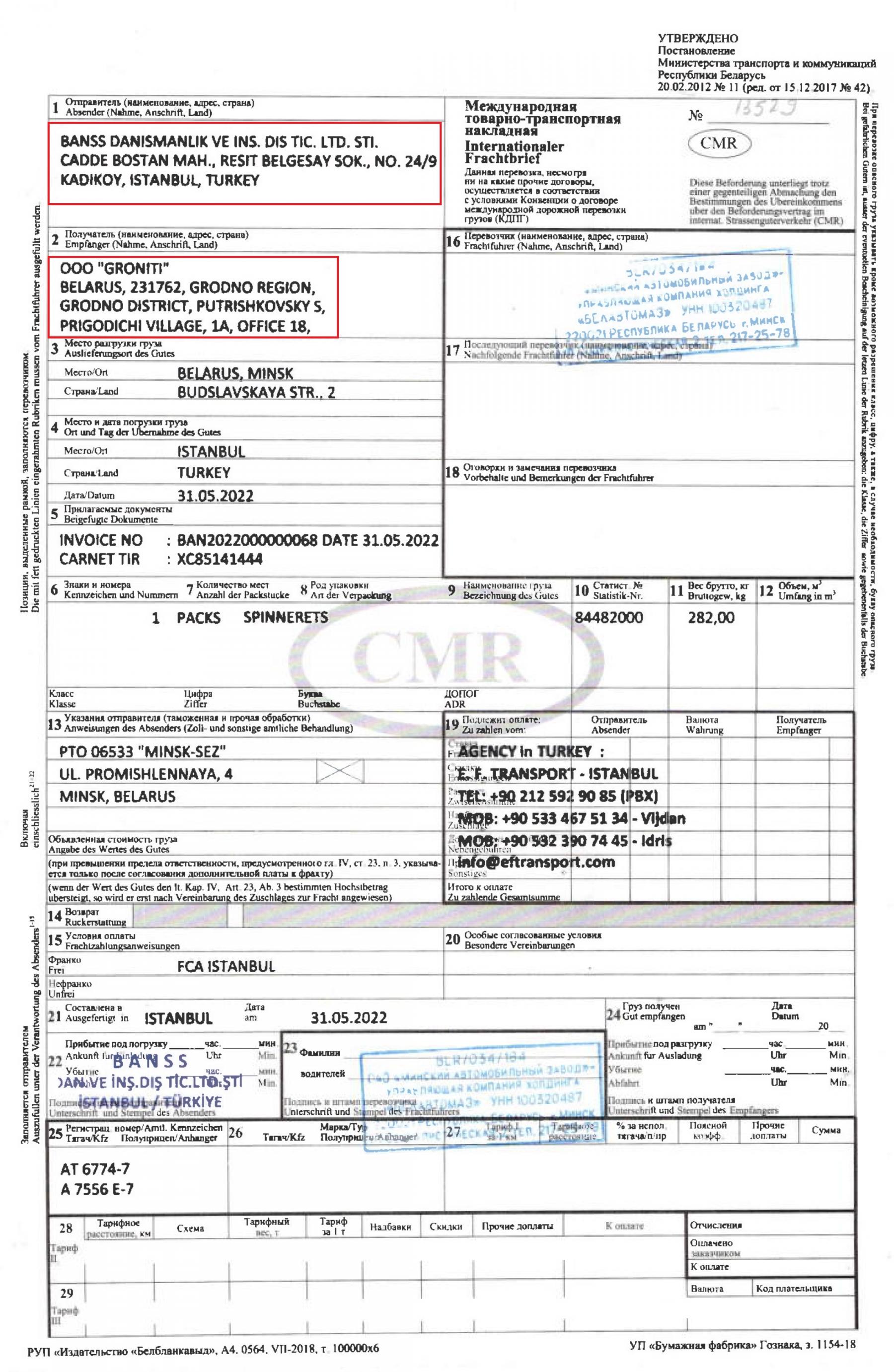Another way was found indeed. A document package from May 2022 provided to the BIC by Rabochy Ruсh shows that Grodno Azot did purchase the spinnerets through intermediaries. The first intermediary was the Turkish company Banss Danişmanlik ve İşaat Diş Ti̇caret Li̇mi̇ted Şi̇rketi̇.
