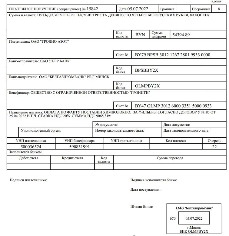 The director of the Austrian supplier company openly told that he was ready to sell the prohibited goods using the scheme he had used before. Moreover, he offered “Brenity” to become an intermediary for the delivery of components to the sanctioned Grodno Azot.
