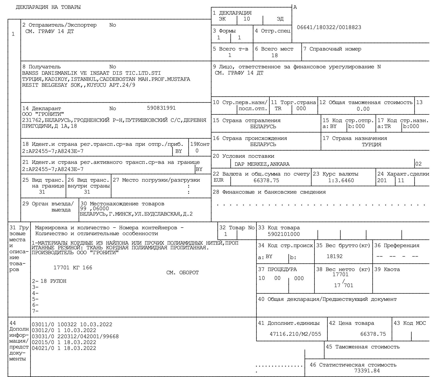 The Turkish company Banss Danişmanlik ve İşaat Diş Ti̇caret Li̇mi̇ted Şi̇rketi̇ is not a new partner of Grodno Azot. It has been cooperating with the enterprise at least since 2020, purchasing polyamide products from it. [*] When the EU and the US imposed their sanctions in 2021, polyamide supplies to the Turkish company went through TAA Groniti. [*]