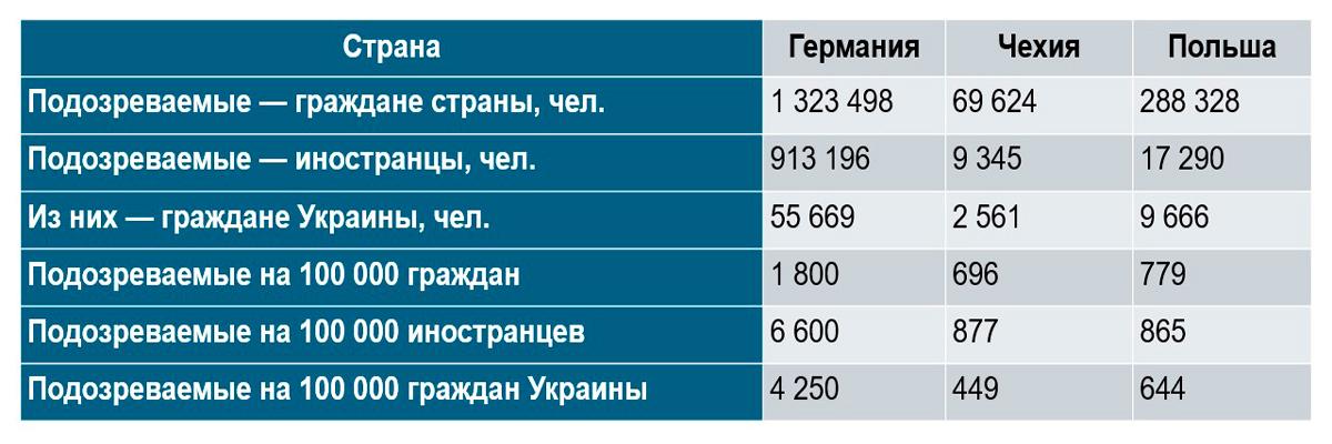 При этом уровень преступности среди украинцев выше, чем среди граждан Германии: на каждые 100 тыс. обладателей украинского паспорта приходится свыше 4 тыс. правонарушителей, тогда как среди немцев — менее 2 тыс.
