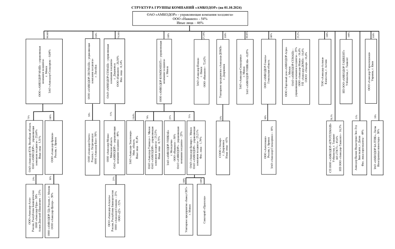 Холдинг «Амкодор» занимался прежде всего производством техники, а его компании-спутники, которые также входили в портфолио бизнесмена, специализировались на поставках запчастей и продаже готовой продукции. Формально они не входили в состав холдинга, но без них основные заводы могли бы остановиться в любой момент. Среди таких компаний — ОАО «Салео-Кобрин», которое выпускало гидроцилиндры для большинства машин «Амкодора», или фабрика СТАО «Проди», производившая пластиковые детали экстерьера и интерьера для колесной техники. К этой же инфраструктуре относится и широко разветвленная дилерская сеть по продаже техники «Амкодора» в России. Поскольку вся эта империя выстраивалась более 20 лет, структура собственности получилась сложной и запутанной — именно это позволило Александру Шакутину не потерять все свои активы одним махом.