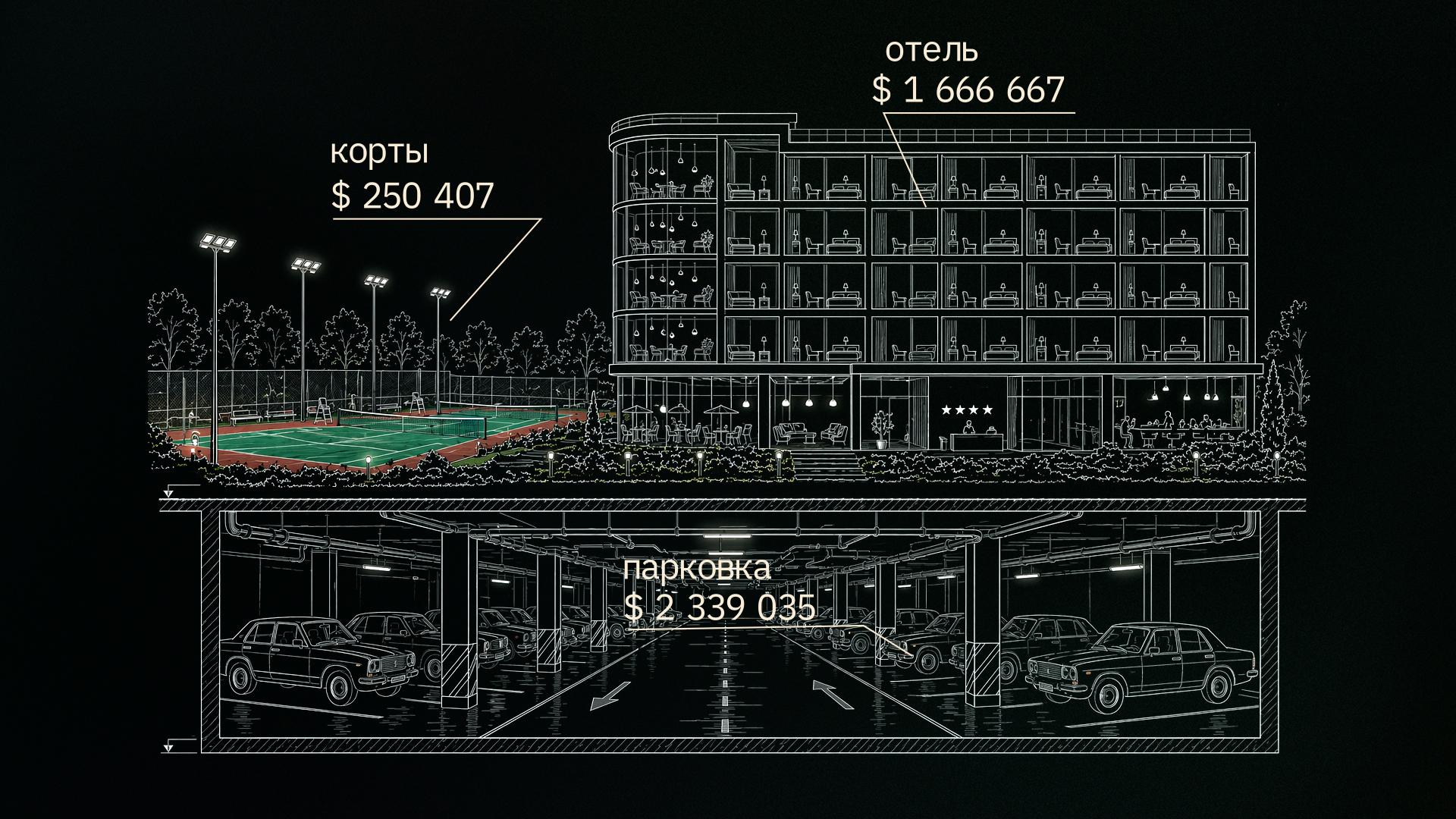 «СкиСтройИнвест» заявлял, что инвестирует в лыжный манеж $13 млн. Но, как подсчитали расследователи с экспертами, стоимость трех участков земли, которые получил инвестор, составляет $15 млн. То есть за цену бесплатной земли «СкиСтройИнвест» покроет вложения в лыжный манеж и останется с прибылью в миллионы долларов после продажи построенных квартир в столице.