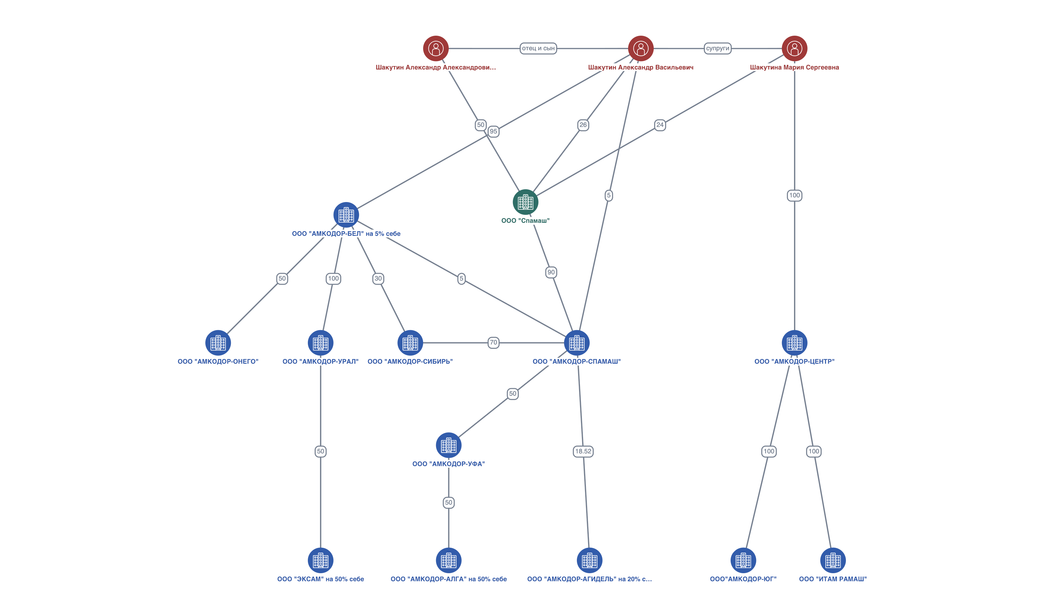 Опровержение: Это частично правда, Александр Шакутин и его жена владеют долями в минимум девяти российских компаниях, которые занимаются выпуском, продажами и техническим обслуживанием техники «Амкодор», но частью фирм они владеют на 100%.