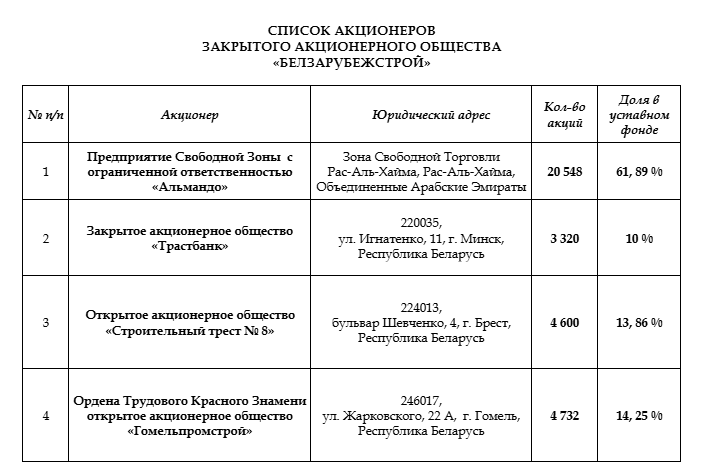 In addition to the above, we also sent inquiries to CJSC “Bank “Rasheniye””, CJSC ViyaSETrade (CJSC Belzarezhstroy), Kromo Constructores S.A.S., and PSGT Middle East Trading LLC, but received no reply from these companies.