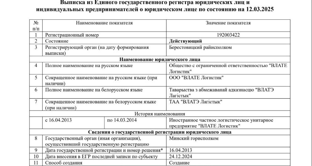 На момент выхода расследования «ВЛАТЕ Логистик» принадлежит беларусам