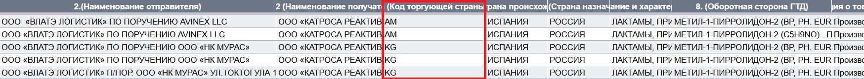 Мы получили таможенные данные, которые указывают, что «ВЛАТЕ Логистик» поставляла химреактив по поручению кыргызской компании ООО «НК Мурас» и армянской ООО «Авинекс». Обе появились после начала полномасштабной войны и введения западных санкций против России: первую зарегистрировали в феврале 2023 года, вторую — в марте 2022-го. [*] [*] Торгующими странами в таможенных декларациях указаны Кыргызстан и Армения, однако местом отправления товара значится Беларусь. Похоже, что подсанкционный химикат формально предназначался для Бишкека и Еревана, но по факту в Беларуси его перенаправляли в Россию. [*]