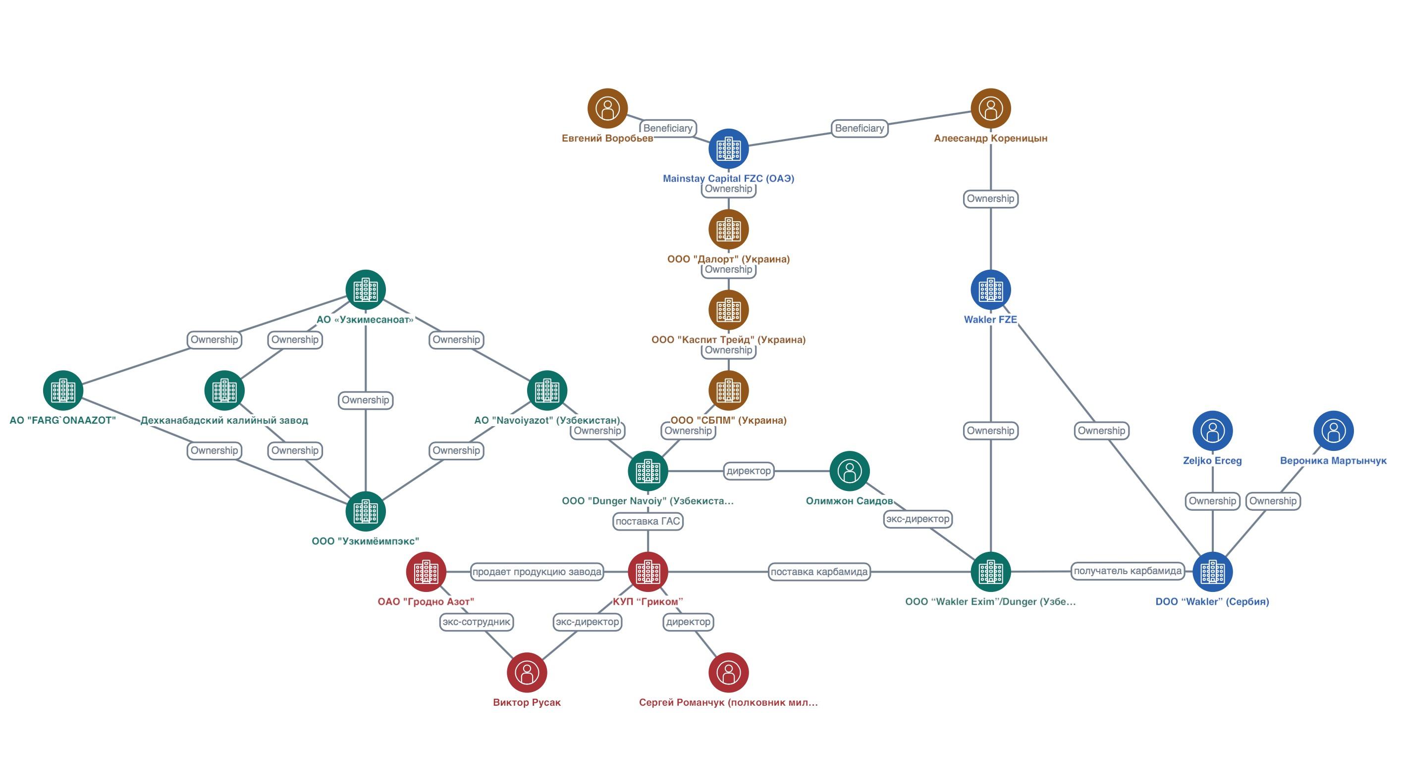 We contacted Belarusian Grikom, Emirati Mainstay Capital FZS, Uzbek Dunger Navoiy and Navoiyazot for comment, but had not received a response by the time of publication. Attempts to establish contact Oleksandr Korenitsyn and Yevgeny Vorobyov has no result.