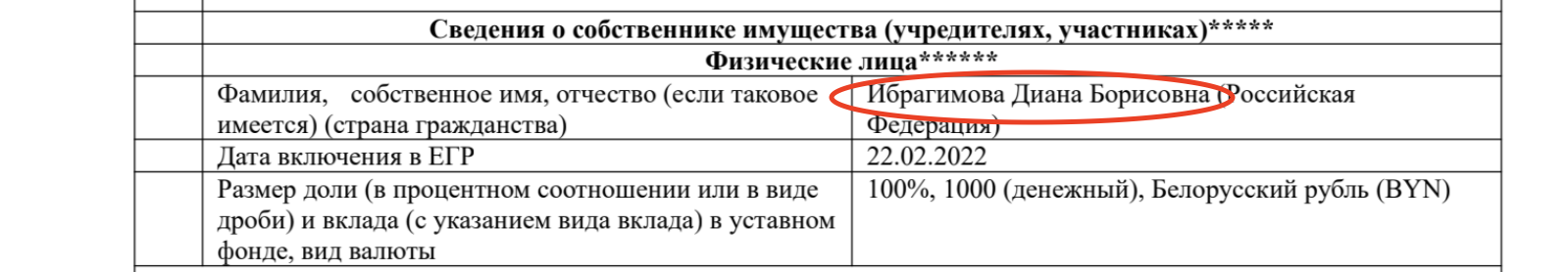 Присмотрелись мы и к владельцу вагонов, в которые грузили карбамид, – беларусской компании «Глобал Фертилайзер Компани», которую основала гражданка России Диана Ибрагимова.