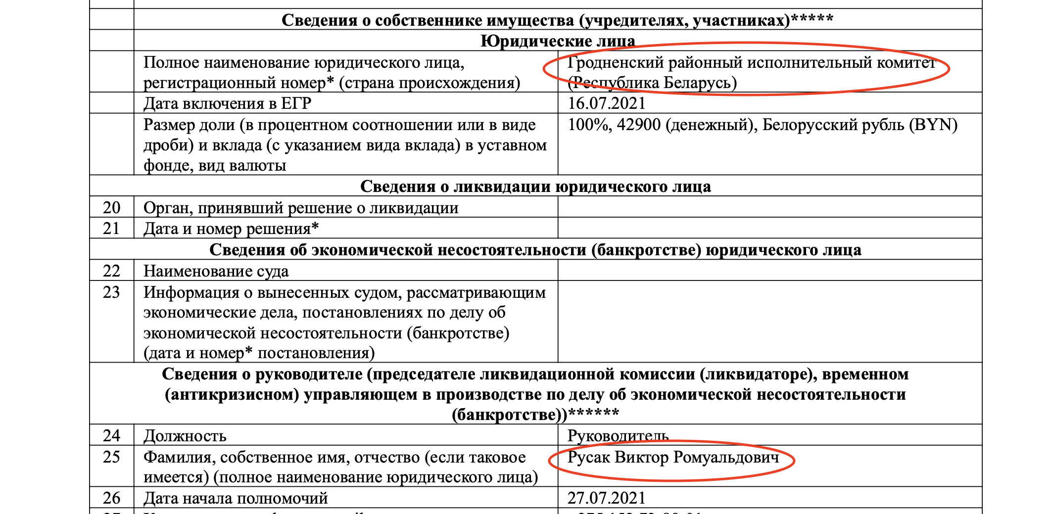 В июле 2021 года Виктор Русак получил новую должность – стал директором созданного накануне предприятия «Гриком». Принадлежит оно Гродненскому исполкому.